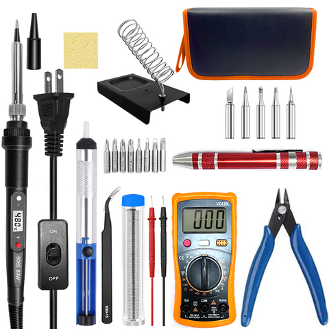 Digital Display 80W Soldering Iron Adjustable Temperature Multimeter Set Electronic Repair Soldering Tools 110V U.S. Plugs