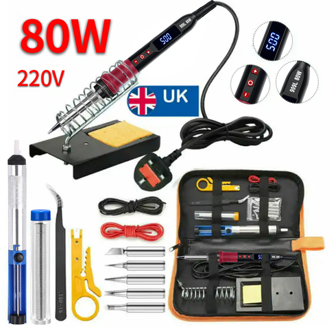 80W תצוגה דיגיטלית הלחמה ברזל ביתי סט מתכוונן טמפרטורת טמפרטורה קבועה מלחם הלחמה סט
