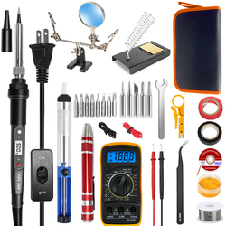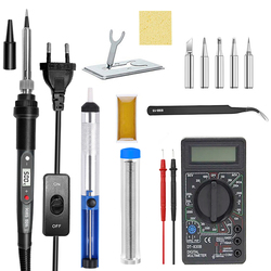 หัวแร้งปรับอุณหภูมิได้80W จอแสดงผลดิจิตอล, ชุดหัวแร้งมัลติมิเตอร์ซ่อมอิเล็กทรอนิกส์ปลั๊ก220Veu